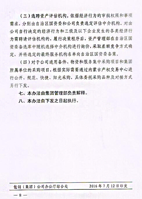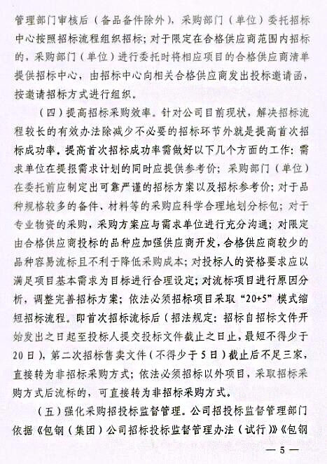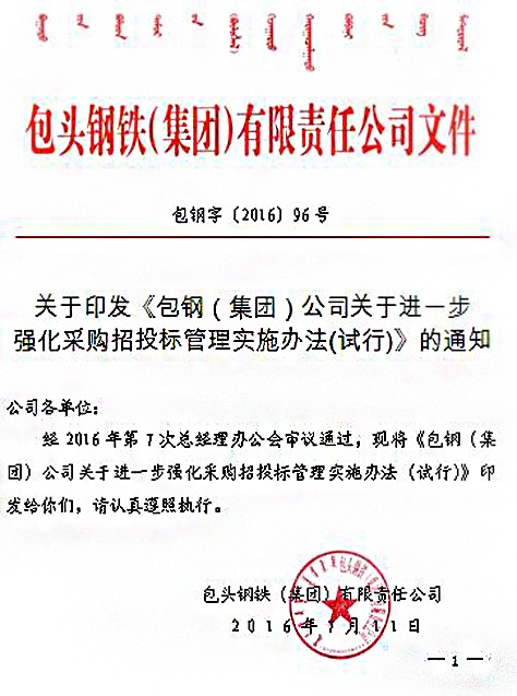 下一條:關(guān)于印發(fā)《包鋼(集團(tuán))公司關(guān)于進(jìn)一步強化采購招投標(biāo)管理實施辦法(試行)》的通知