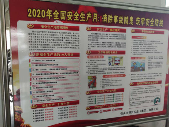 根據(jù)《包頭市安全生產(chǎn)委員會關(guān)于開展2020年“安全生產(chǎn)月”和“安全生產(chǎn)萬里行”活動的通知》(包安委會發(fā)﹝2020﹞4號文件),集團公司制定了“安全生產(chǎn)”的活動方案,進一步加強和全面落實全員安全生產(chǎn)責任制,廣泛傳播集團公司安全文化。通過深入開展主題宣講活動,積極組織“6?16”宣傳咨詢?nèi)栈顒樱_展安全生產(chǎn)應急救援演練活動,推進安全宣傳工作等活動形式,牢固樹立安全發(fā)展理念,提升員工安全意識和素養(yǎng),確保安全生產(chǎn)持續(xù)穩(wěn)定。