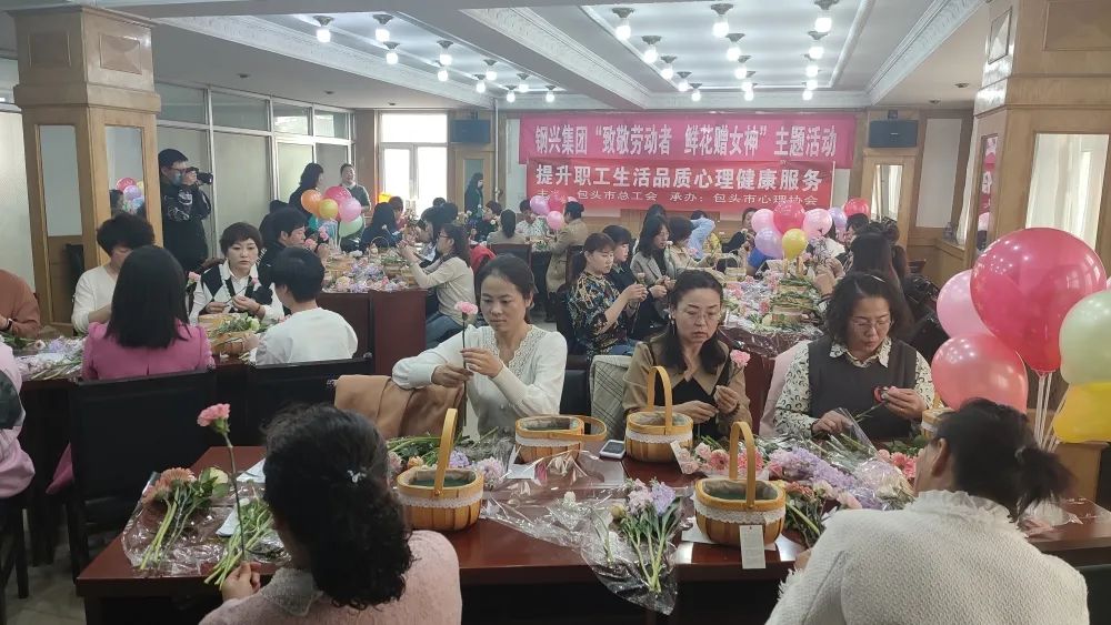 活動中,邀請了包頭市陳欣心理學(xué)校的老師針對現(xiàn)代女性在工作、生活中如何進行自我調(diào)節(jié)和自我放松,從而促進了女職工的身心健康。隨后,花藝?yán)蠋煆倪x花、裁剪、顏色搭配、造型等多方面講解插花技巧。大家將修剪好的花束插入花籃中,一籃籃春意盎然、獨具匠心的插花作品應(yīng)運而生。通過學(xué)習(xí)插花,既陶冶了情操、提高了審美,又增強了女職工的幸福感。